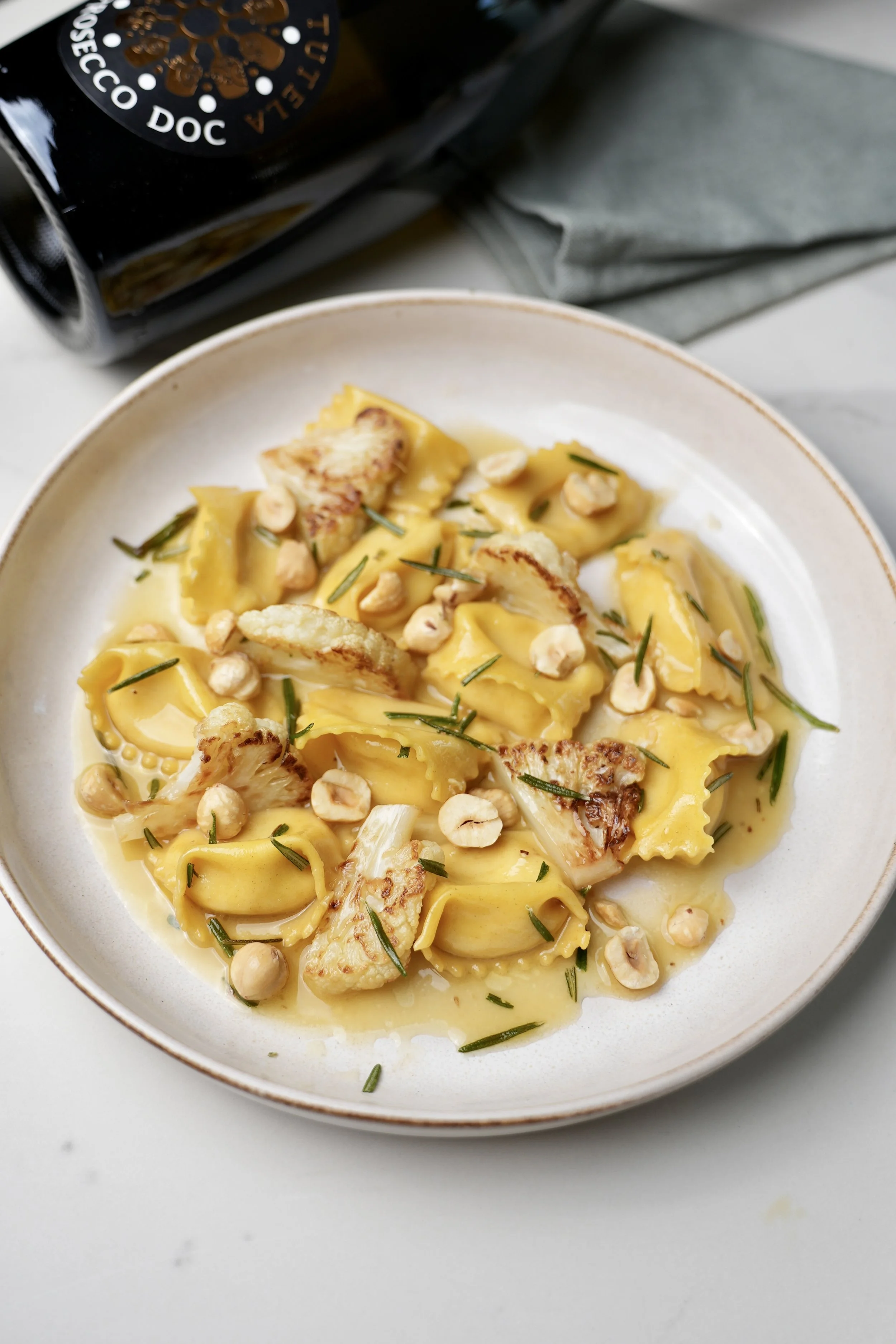 Agnolotti al cavolfiore con nocciole e Prosecco DOC - Testo Italiano in fondo alla pagina